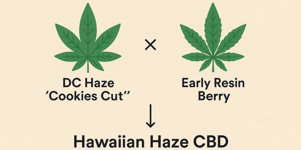 En Hawaiian Haze CBD, el punto de partida es un cruce con intención clara: DC Haze “Cookies Cut” × Early Resin Berry (ERB). Este linaje combina la ligereza aromática de las Haze con una base resínica que fija CBD alto y mantiene THC bajo, algo que no sucede por casualidad. Es la arquitectura genética que explica por qué la flor ofrece un perfil tropical limpio y un rendimiento químico estable lote tras lote. El resto —reputación y usos— se sostiene en esa base.