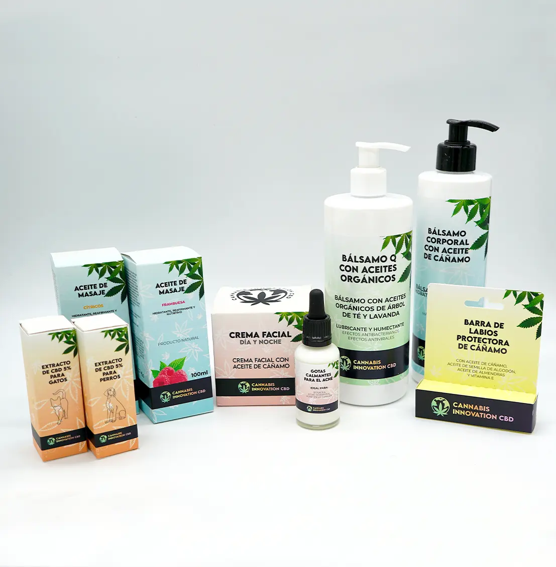 Aceite de cáñamo: regenera la piel y la hace más elástica, también proporciona una hidratación adecuada. Útil para afecciones de la piel como seborrea, psoriasis y eccema. Tiene la capacidad de disminuir la secreción de sebo, evitando así los rebrotes.